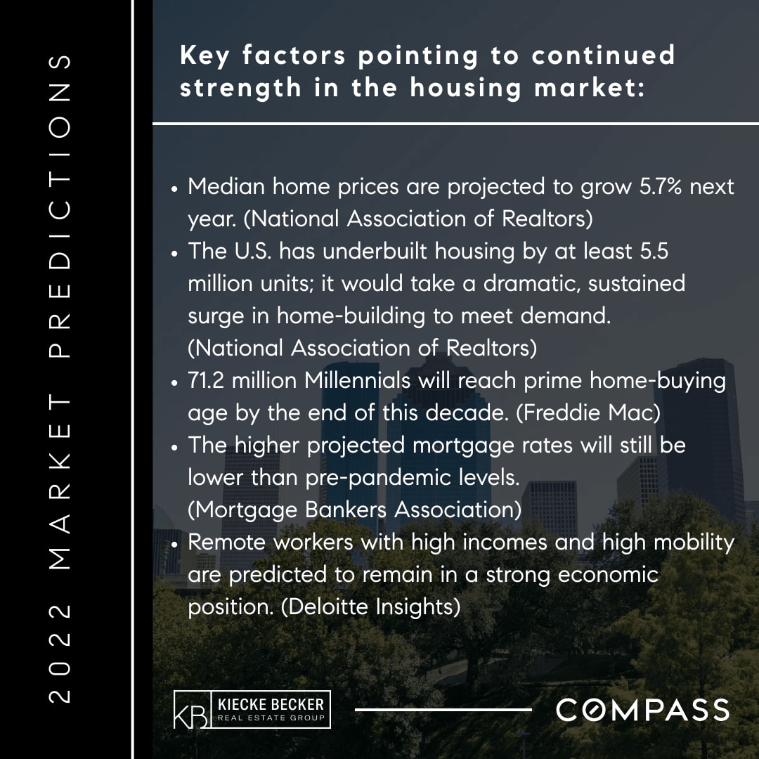 2020's Houston real estate market, the first year of the global pandemic, also broke nearly every previous record set and it was a shock to everyone in the industry. While I do not think that 2022 will see the same heightened level of scorching hot growth, I do expect this year to be another strong, competitive year for homebuyers battling slightly higher prices, tight supply of resale homes, supply chain issues for building materials, and rising interest rates.
