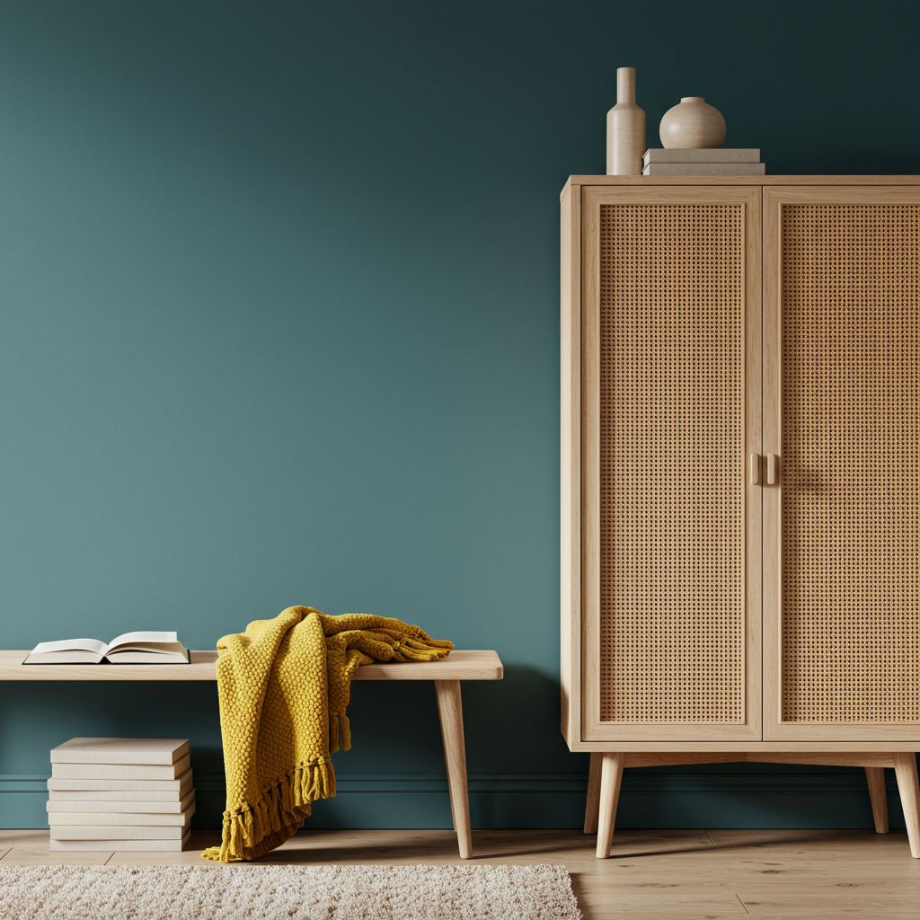 You can use this adaptable teal as a striking wall color paired with deeper-toned woods and off-white trim to create a nature-infused vibe or to create a luxurious glam look by pairing it with gold accents and bright white trim. This “bluish-greenish-something-in-betweenish” color of the year is also eye-catching on trim and cabinetry. Home decor with rich textures, wood finishes, and stone accents complement the deep tones of Vining Ivy.