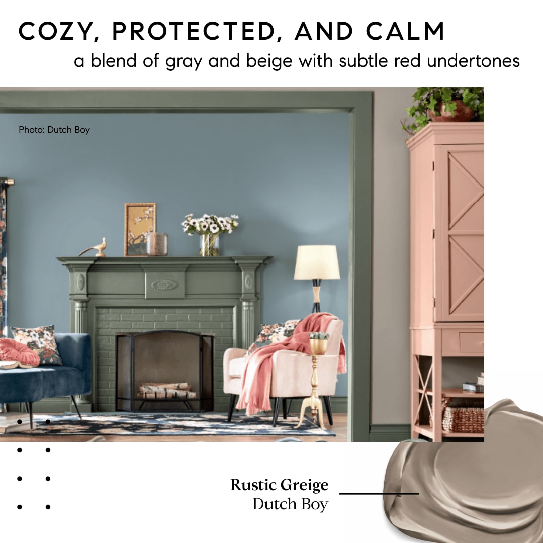 After years of uncertainty, Dutch Boy Paints named Rustic Greige as their 2023 color of the year with the goal of bringing comfort back into the home. The balance of this medium-toned neutral with red undertones creates a look that is both worldly and charming!
