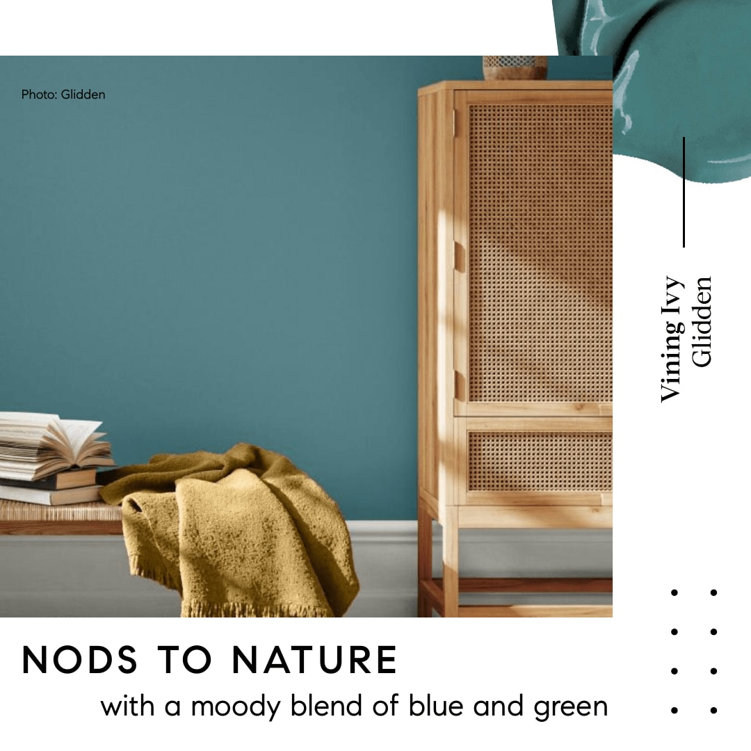 Claiming that "it's so nice, we picked it twice", two leading paint companies, Glidden and PPG, paired up to name Vining Ivy as their 2023 color of the year. This restorative shade fuses the best elements of jewel tones and natural elements. Vining Ivy is a bold blue-green making it the perfect on-trend addition for contemporary designs or a refined pop of color for traditional spaces.
