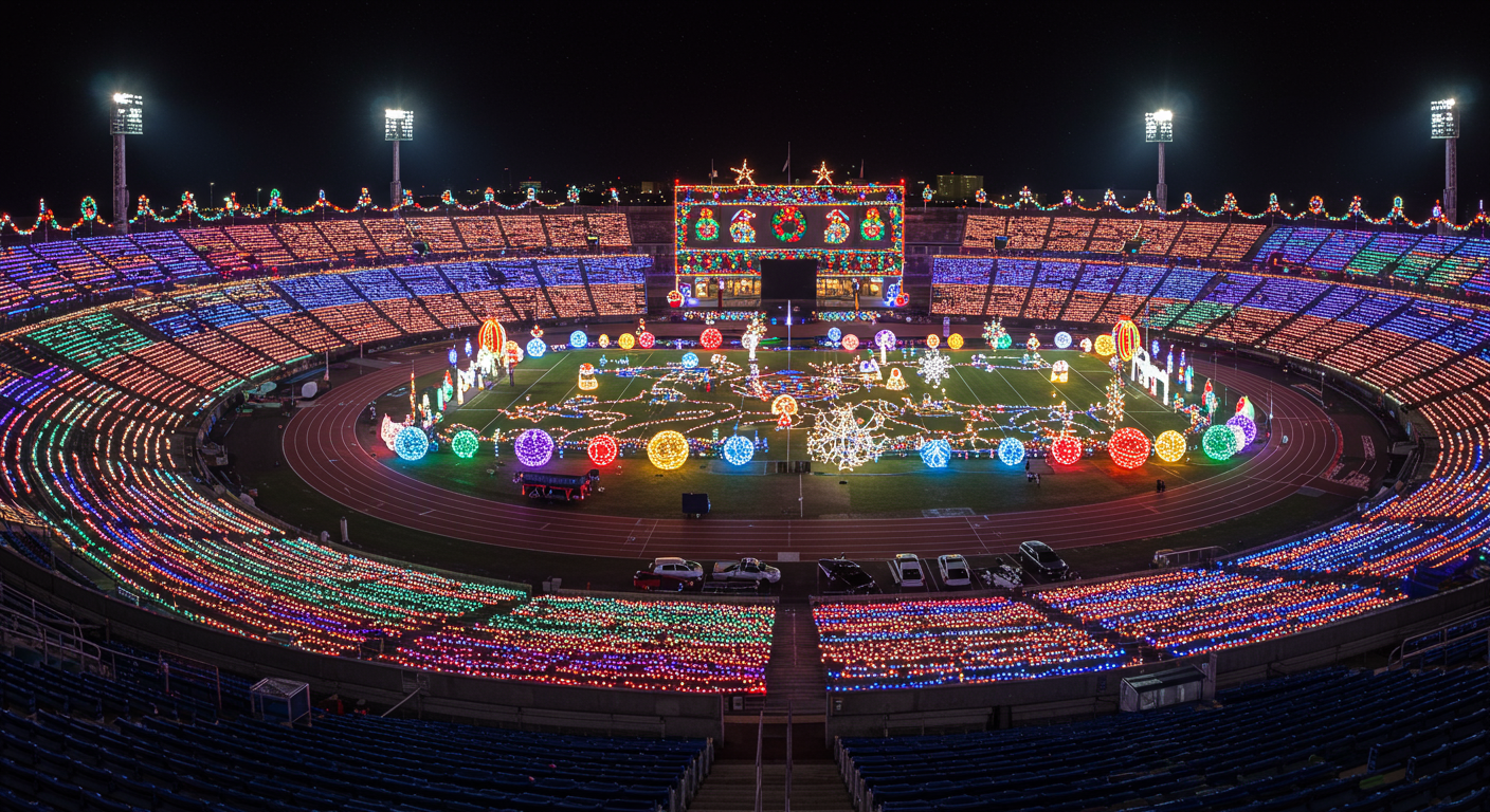 Holiday lights take over Constellation Field with over 3 million lights, a 40’ light-up tree, and 10 themed areas offering food, movie nights, visits from Santa, and a carnival!