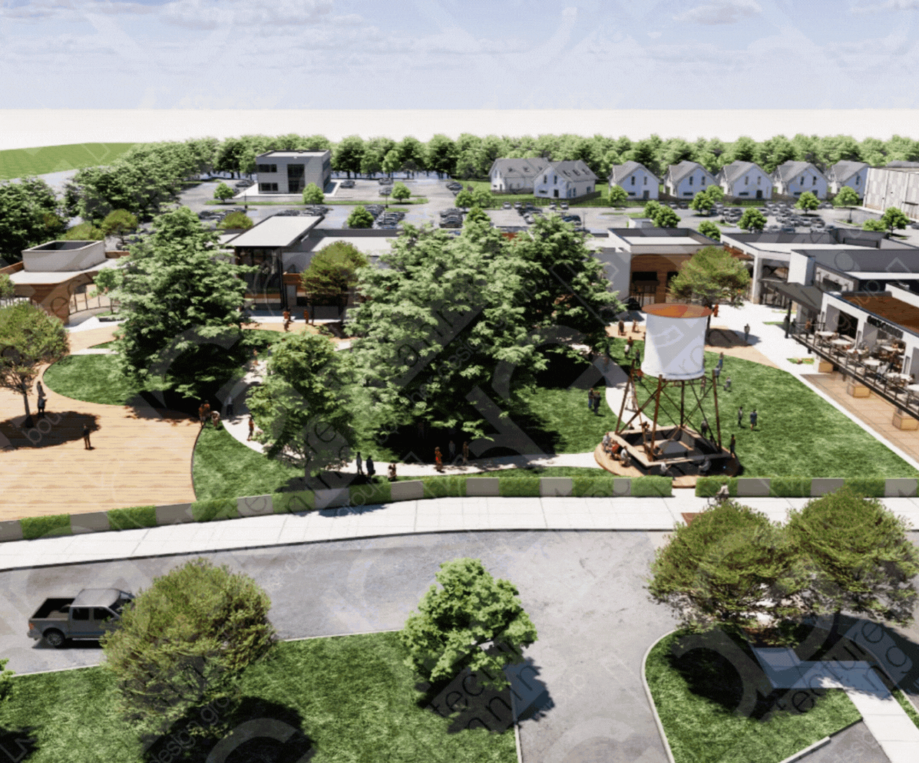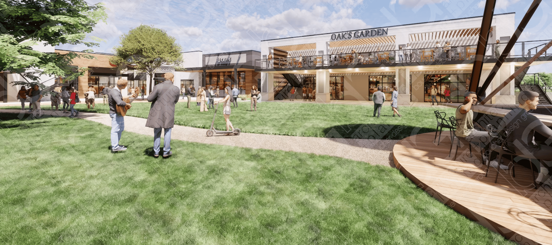 This isn’t just another shopping center courtyard. Oaks Green is being designed as the soul of District West with a shady, tree-covered outdoor hangout meant for everything from lazy weekend patio drinks to community events.