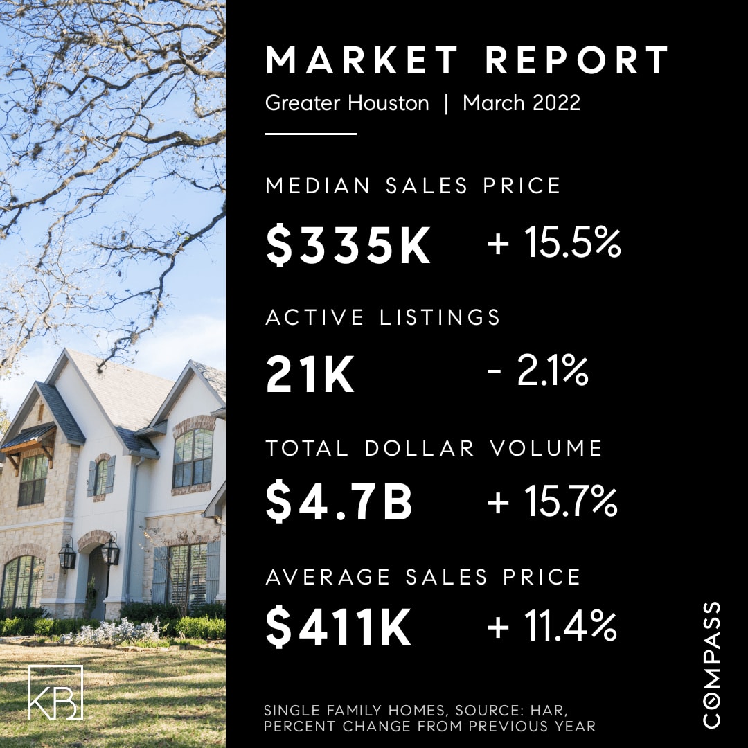 According to the Houston Association of Realtors March 2022 Market Update, the median price climbed 15.5% to $335,000 while the average price rose 11.4% to $410,923. These prices are not only new record highs, but the average price represents the first time that single-family pricing has exceeded $400,000!