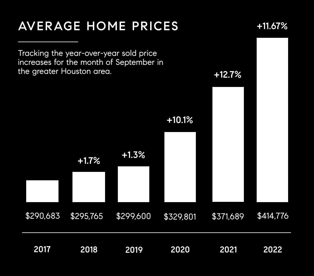 The median home price in September 2022 was the THIRD highest in Houston real estate history, while the average sales price topped last month making it the FIFTH highest ever.
