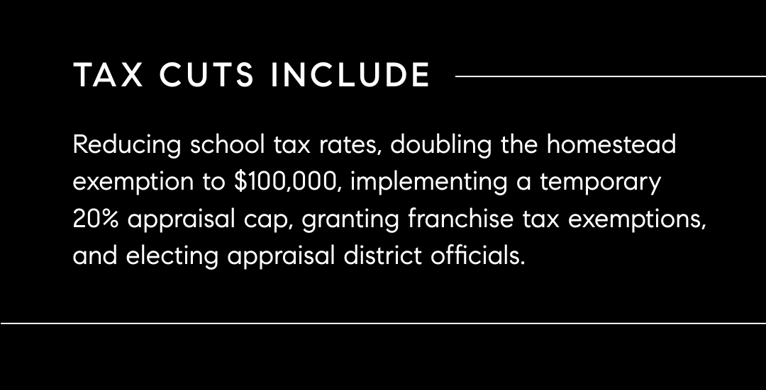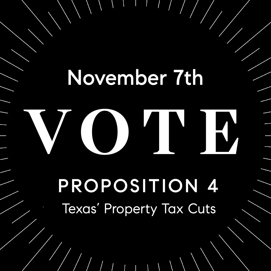It’s now in the hands of Texas voters! Texas voters still need to give final approval to these tax cuts by voting on Proposition 4 during the November 7th ballot. MARK YOUR CALENDAR!