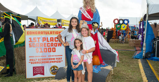 he 10th Annual Scarecrow Fest is this Saturday from 1-6 p.m. at 6450 Cross Creek Bend Lane in the master planned community of Cross Creek Ranch! The festival also includes a live band, pumpkin patch, face painting, performances by Dock Dogs, photo opportunities with a capuchin monkey and midway merchants. An Array of food trucks will also be onsite.